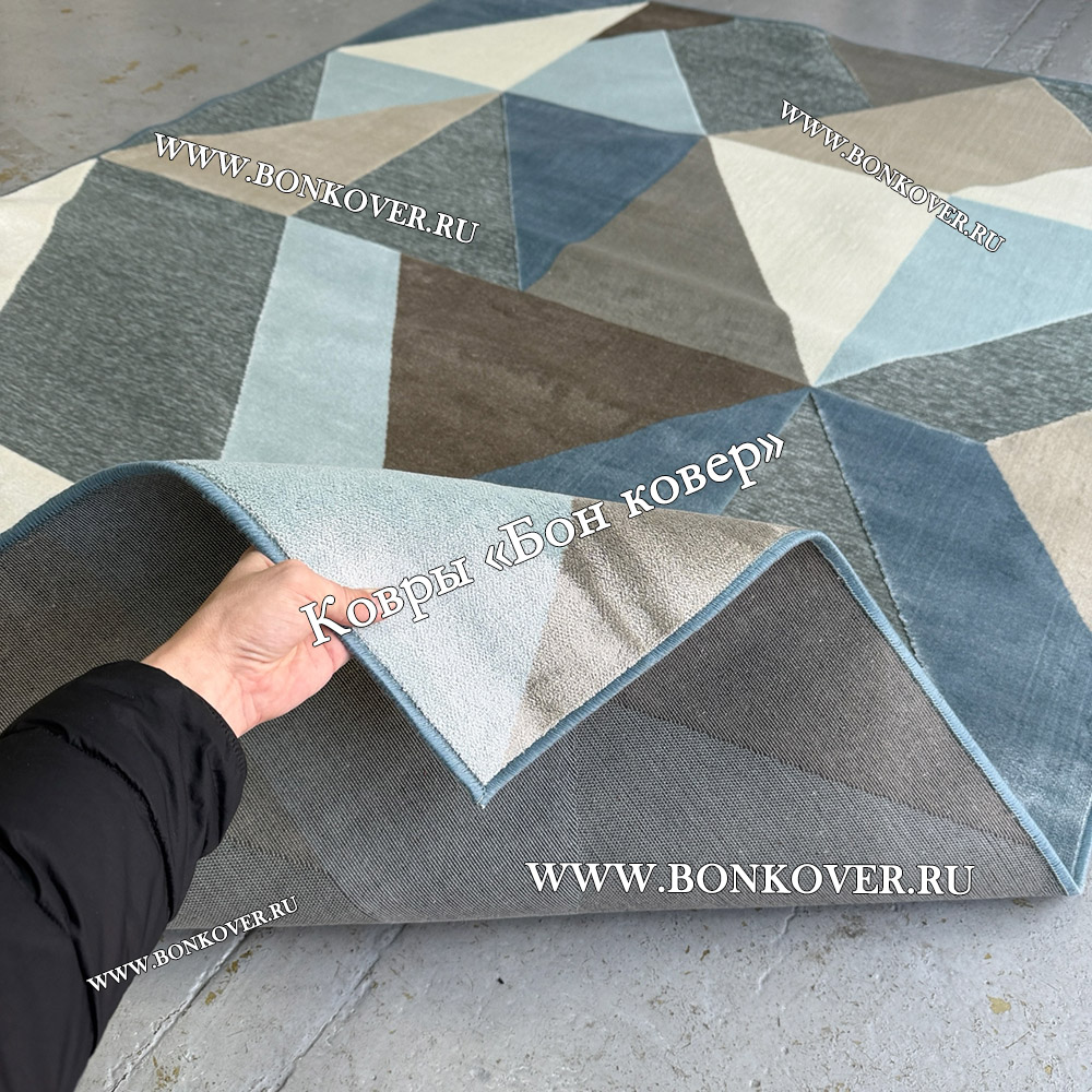 Красивый Геометрический Ковер Из Вискозы Дизайн 21617 наполняет интерьер комнаты теплом и уютом, гармонично сочетает в себе изящество и красоту. Он создан из износостойких материалов, прочный и долговечный.