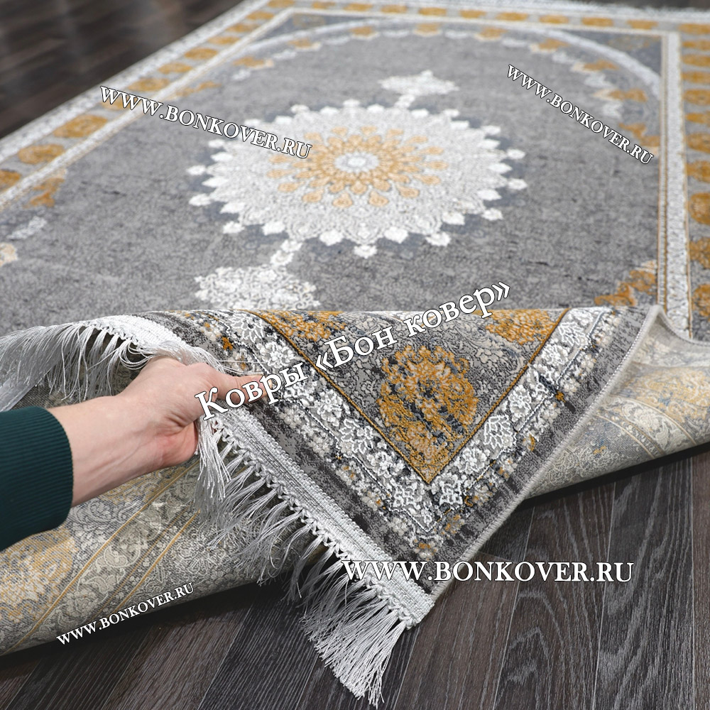 Импозантный Ковер Для Гостиной Медальон Дизайн 30597 наполняет интерьер квартиры теплом и уютом, гармонично сочетает в себе изящество и красоту. Он изготовлен из высококачественных материалов, комфортный и долговечный.
