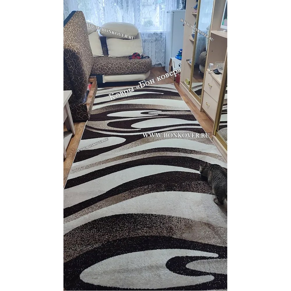 Ковер Карпет New 4 Дизайн 63 Коричневый с Бежевым станет стильным преображением вашей комнаты, подчеркивая высокий статус семьи владельца.