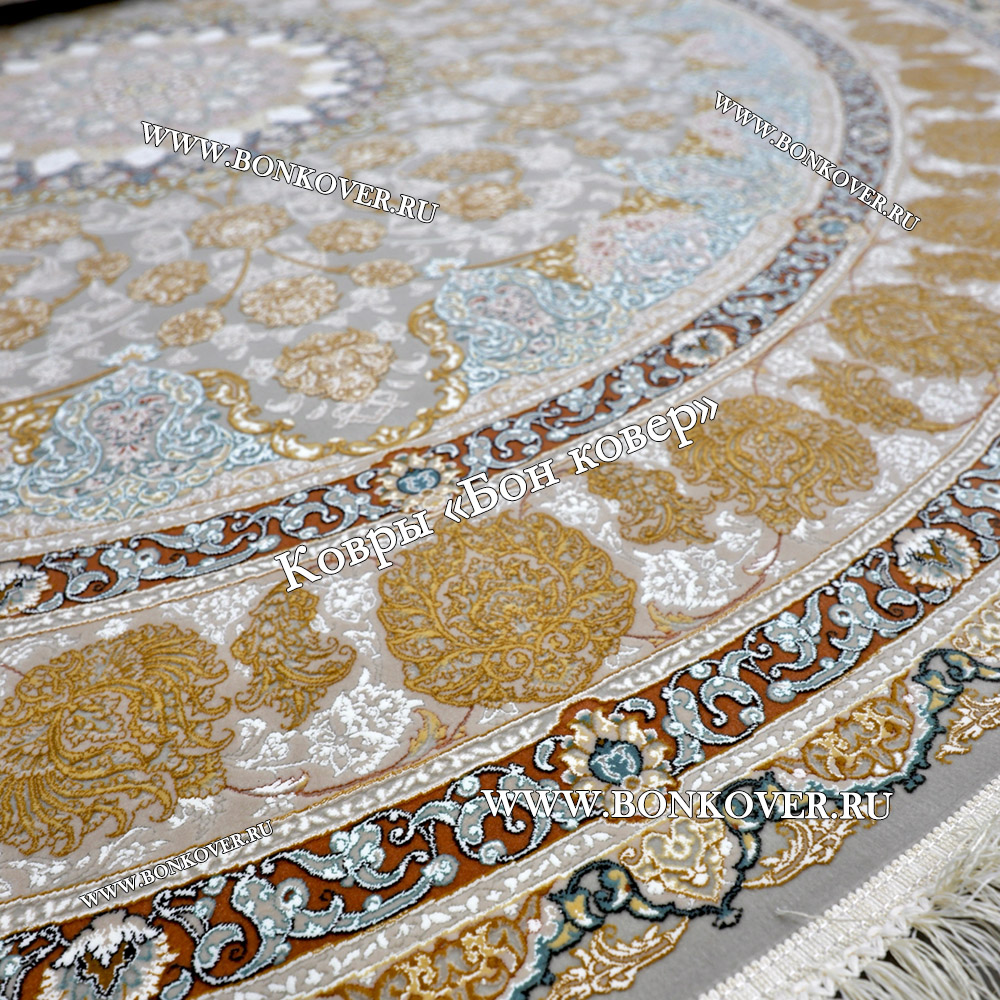 Восточный Ковер Для Гостиной Дизайн 30545 Круг станет блестящим дополнением интерьера, оформленного в современном или классическом стиле. Мягкое, но прочное, ковровое изделие обеспечивает тепло- и шумоизоляцию, отличается длительным периодом эксплуатации, пожаробезопасностью, экологичностью и высокой износостойкостью, является отличной преградой от повышенной влажности в помещении и утеплителем для холодного пола. Благодаря качеству материалов, ковер не деформируется, сохраняет первоначальный вид под тяжестью предметов мебели. За его поверхностью легко ухаживать.