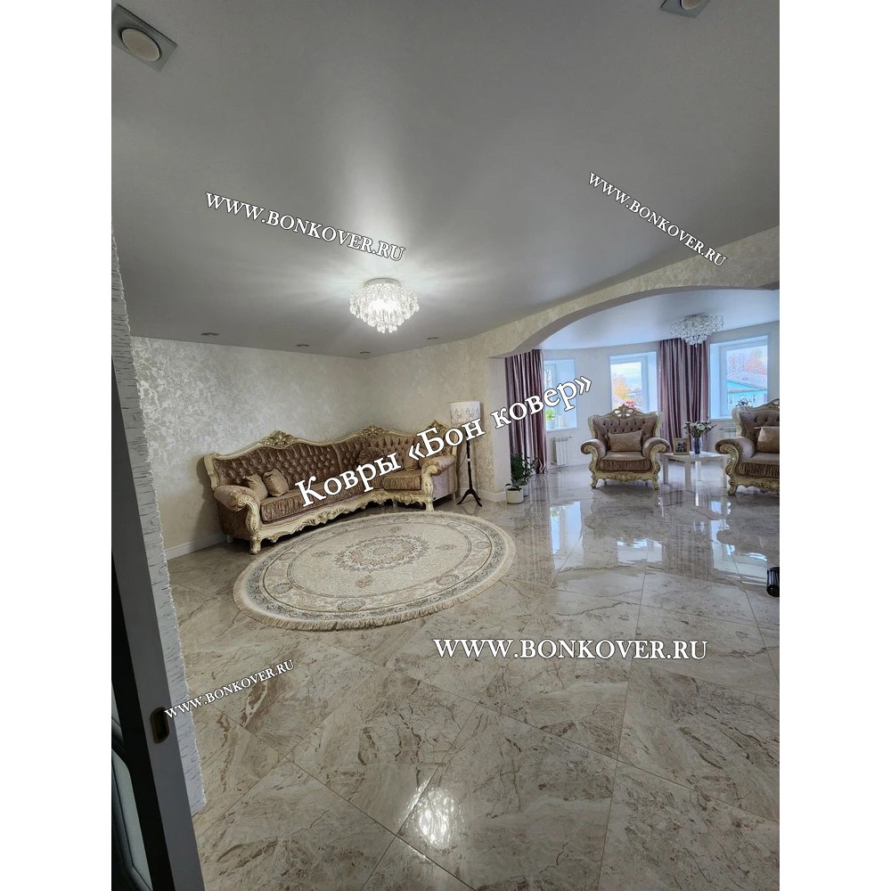 Красивый Восточный Ковер Для Гостиной Дизайн 30546 Круг наполняет интерьер вашего дома теплом и уютом, гармонично сочетает в себе изящество и красоту. Он выполнен из износостойких материалов, прочный и долговечный.